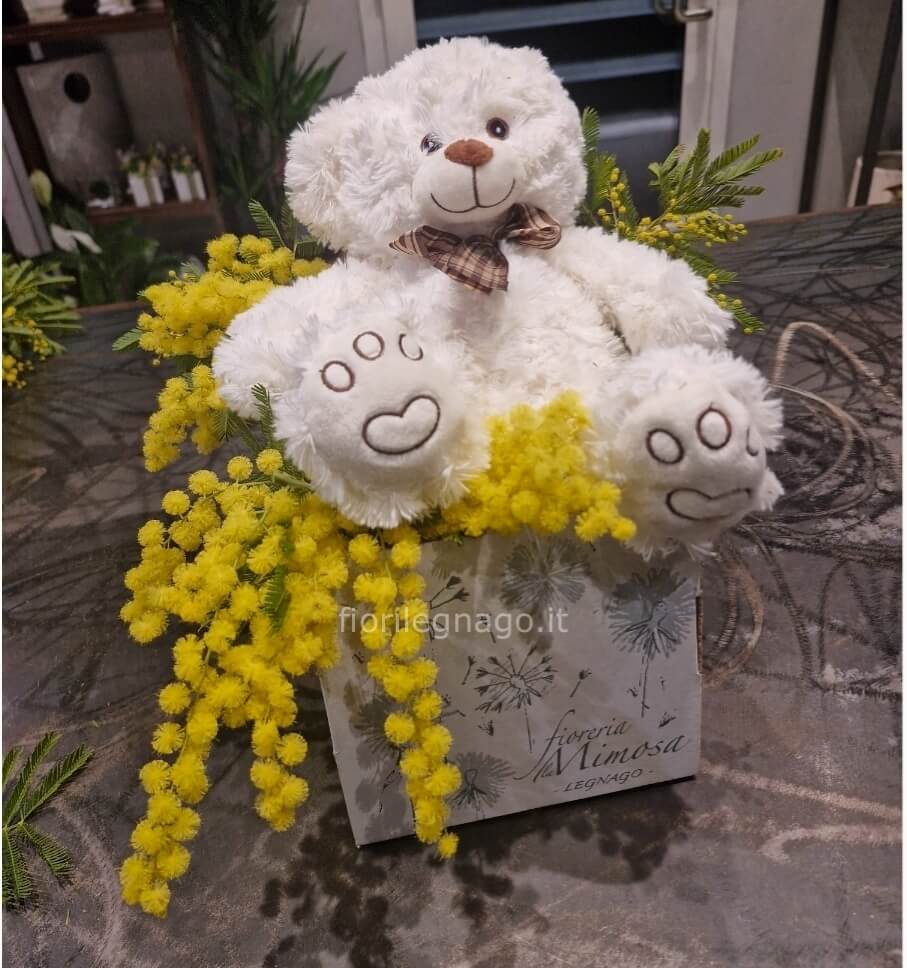 | Simpatico peluches con box e mimosa Cod. 125796 | € 40,00 | Quantità : | |